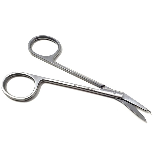 One Angled Hook Tip These snips feature an angled hook in the front of the blade that slides under sutures to slightly lift them before cutting. The hook also holds the threads so it does not slip off the blade of the scissors prior to cutting.Sleek Delicate Design Lightweight ergonomic design reduces hand fatigue during repetitive tasks. Enables a high degree of precision and flexibility while conducting delicate procedures.Steady Grip The finger rings are smooth and comfortable to hold with no burrs that could hurt the hand. Sturdy & Functional Made of high-quality stainless steel, which is durable and sturdy with anti-rust and anti-corrosion properties. Manufactured from AISI 420 stainless steel, the product conforms to ISO 9001, ISO 13485, FDA, and other Quality Standards. Shipped in retail gift packaging.