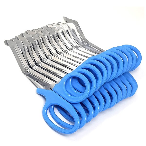 Trauma Shears 12/Pack Non-Stick 7.25 First Aid EMT Stainless Steel Scissors Sky Blue Handle
