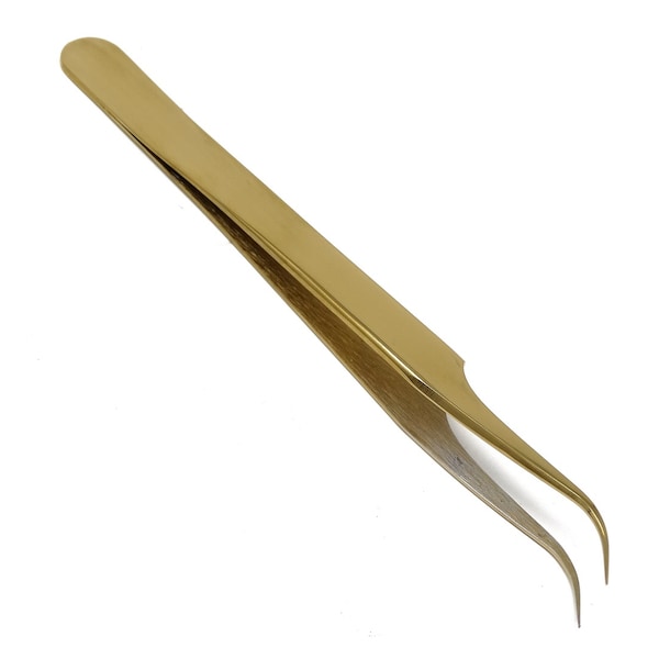 Volume Eyelash Lash Fine Point Tweezers Strong Curve Gold Plated