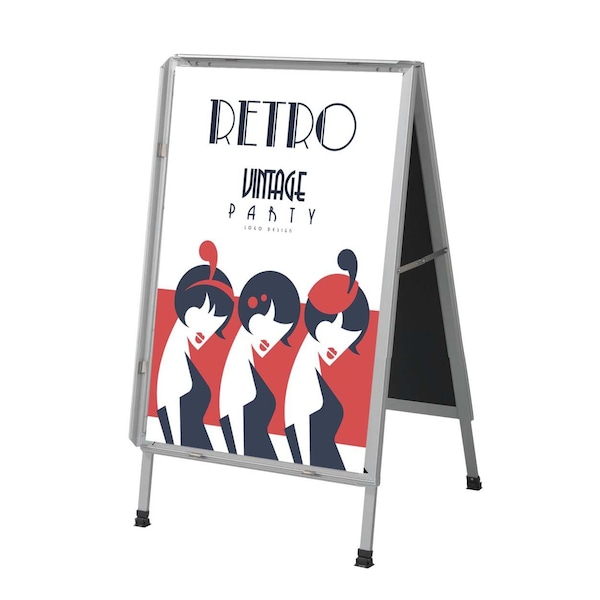 Snapframe A-Frame Sidewalk Boards make great Menu Boards or POP signs that broadcast messages effectively. Great for restaurants, pubs, markets and retail stores. Display your poster or sign in this easy to use, double sided and sturdy Satin anodized Aluminum Snapframe A-Frame. Print size 28"H X 22"W