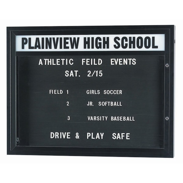 Double Sided Community Boards are ideal for religious, educational, and community buildings of all types for posting schedules, announcements, and messages that are clearly read and visible at night as well as during daytime hours. Units are constructed of solid extruded Aluminum and the black vinyl letter board are Removable for easy message changes. Supplied with a blank header panel, ready for your custom vinyl lettering. Lettering is not included and must be applied by the customer. Frame: Bronze Anodized Size 33"Hx43"Wx6" Deep