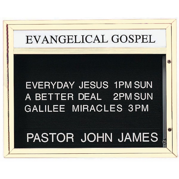 Double Sided Community Boards are ideal for religious, educational, and community buildings of all types for posting schedules, announcements, and messages that are clearly read and visible at night as well as during daytime hours. Units are constructed of solid extruded Aluminum and the black vinyl letter board are Removable for easy message changes. Supplied with a blank header panel, ready for your custom vinyl lettering. Lettering is not included and must be applied by the customer. Frame: Ivory Powder Coated Finish Size 33"Hx43"Wx6" Deep
