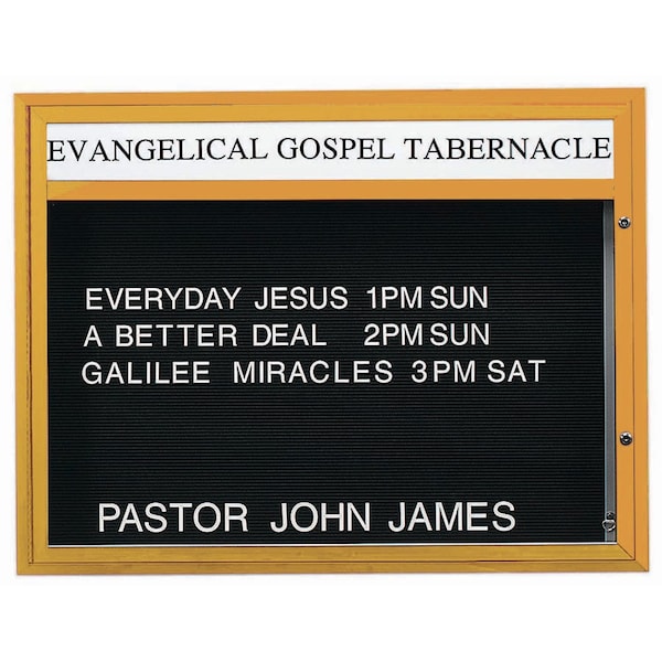 Double Sided Community Boards are ideal for religious, educational, and community buildings of all types for posting schedules, announcements, and messages that are clearly read and visible at night as well as during daytime hours. Units are constructed of solid extruded Aluminum and the black vinyl letter board are Removable for easy message changes. Supplied with a blank header panel, ready for your custom vinyl lettering. Lettering is not included and must be applied by the customer. Frame: Earth Brown Powder Coated Finish Size 36"Hx47"Wx4" Deep