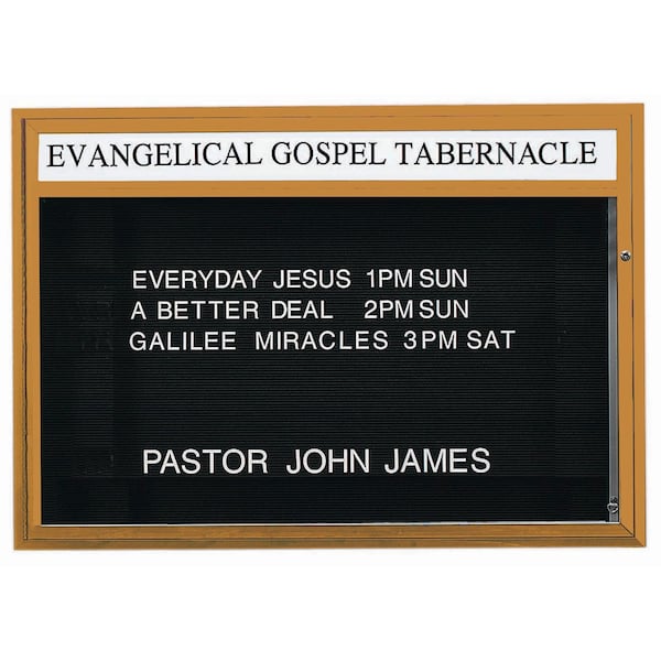 Double Sided Community Boards are ideal for religious, educational, and community buildings of all types for posting schedules, announcements, and messages that are clearly read and visible at night as well as during daytime hours. Units are constructed of solid extruded Aluminum and the black vinyl letter board are Removable for easy message changes. Supplied with a blank header panel, ready for your custom vinyl lettering. Lettering is not included and must be applied by the customer. Frame: Earth Brown Powder Coated Finish Size 42"Hx60"Wx6" Deep