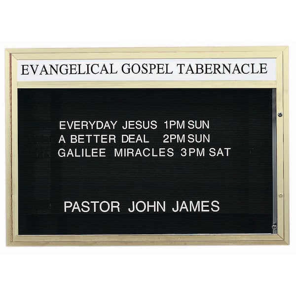 Double Sided Community Boards are ideal for religious, educational, and community buildings of all types for posting schedules, announcements, and messages that are clearly read and visible at night as well as during daytime hours. Units are constructed of solid extruded Aluminum and the black vinyl letter board are Removable for easy message changes. Supplied with a blank header panel, ready for your custom vinyl lettering. Lettering is not included and must be applied by the customer. Frame: Ivory Powder Coated Finish Size 42"Hx60"Wx6" Deep