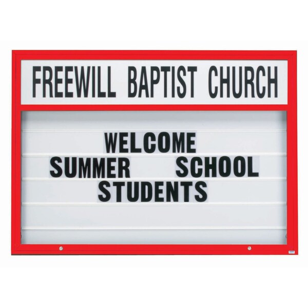 70 in W, 50 in H, White Translucent Letterboard/Red Powder Coated Frame