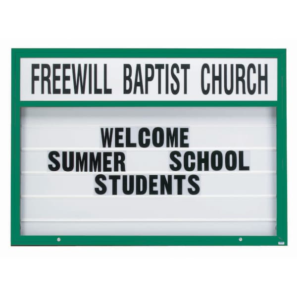 72 in W, 52 in H, White Translucent Letterboard/Forrest Green Powder Coated Frame