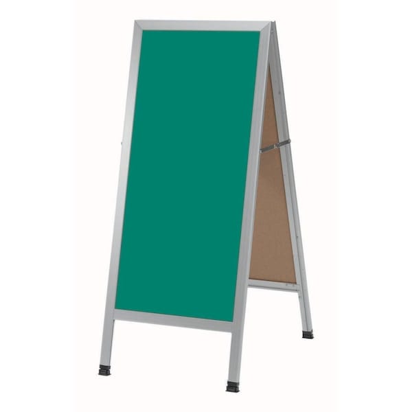 A-Frame Sidewalk Board, Green Porcelain Chalkboard and Satin Aluminum Frame, 42''Hx18''W