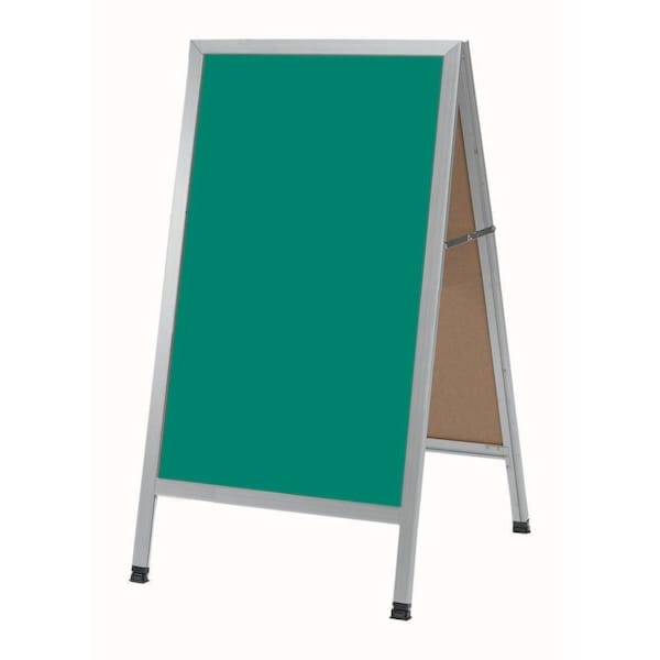 A-Frame Sidewalk Board, Green Porcelain Chalkboard and Satin Aluminum Frame, 42''Hx24''W