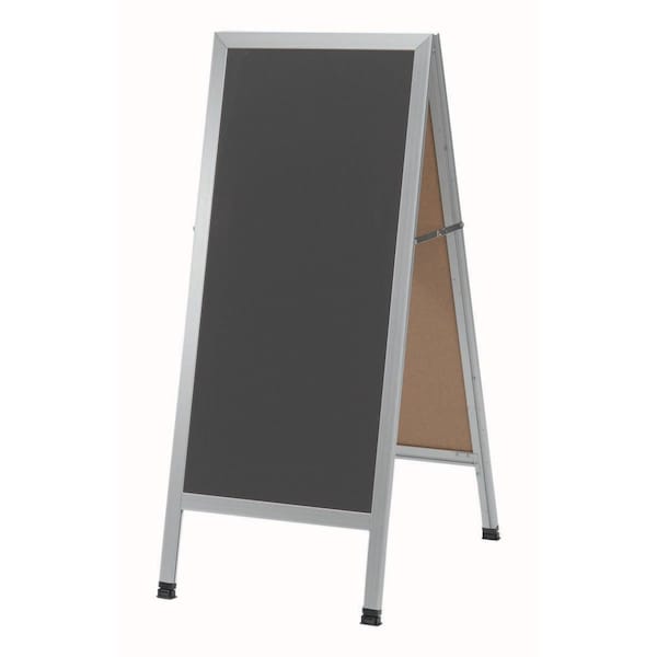 A-Frame Sidewalk Board, Slate Colored Porcelain Chalkboard and Satin Aluminum Frame, 42''Hx18''W