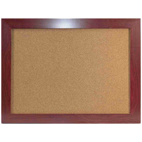 Natural Pebble Grain Cork Bulletin Board with an Aluminum Wood Look Finish which is a Unique Powder coated process that combines the warm rich appearance of natural hardwood with the rugged and enduring qualities of extruded Aluminum. Frame Cherry Look Size 48"Hx60"W