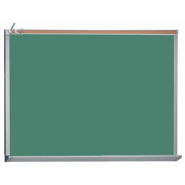 Architectural High Performance Series Chalkboard. Green Chalkboard with a Clear Satin Anodized Aluminum Frame and Full Length Box Style Chalk Tray with Molded End Caps. Size 36"Hx48"W