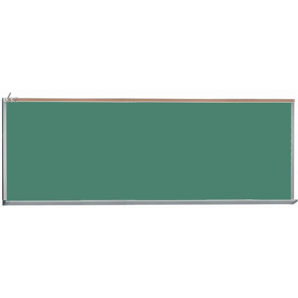 Architectural High Performance Series Chalkboard. Green Chalkboard with a Clear Satin Anodized Aluminum Frame and Full Length Box Style Chalk Tray with Molded End Caps. Size 48"Hx144"W