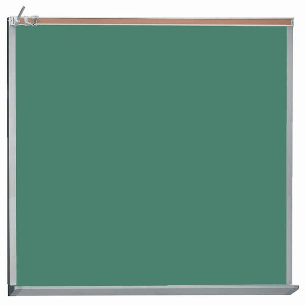 Architectural High Performance Series Chalkboard. Green Chalkboard with a Clear Satin Anodized Aluminum Frame and Full Length Box Style Chalk Tray with Molded End Caps. Size 48"Hx48"W