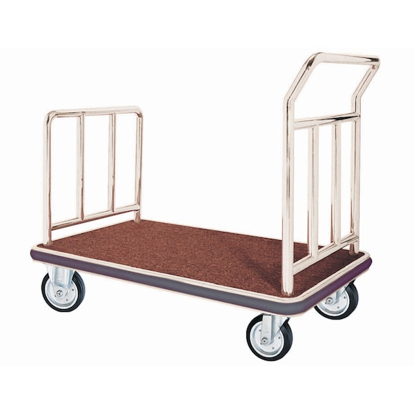 Bellman's Hand Truck. This Attractive Hand Truck is Sturdily Constructed using 1-1/2" Tubing and Features 6" Solid Wheels, Red Carpeted Bed and Bumper Guards. Color: Chrome Size: 42"Lx24"Wx36"H