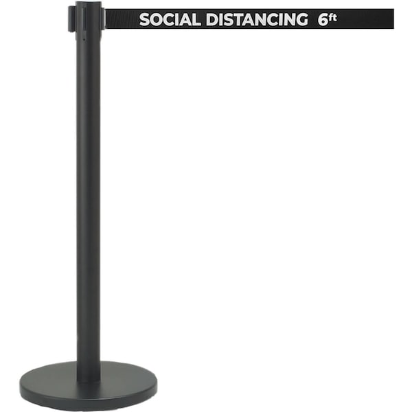 - Form-A-LineTM Retractable Belt Quality Crowd Control System is perfect for banks, motor vehicle agencies, cafeterias and all areas where organized queuing is required. Black Finish. Height 40". 7' Double Sided Printed Black Belt with White Lettering "SOCIAL DISTANCING 6FT".
