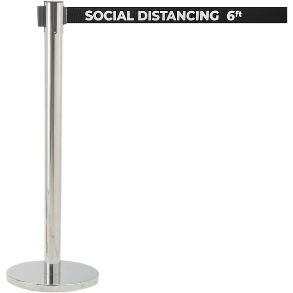 - Form-A-LineTM Retractable Belt Quality Crowd Control System is perfect for banks, motor vehicle agencies, cafeterias and all areas where organized queuing is required. Satin Finish. Height 40". 7' Double Sided Printed Black Belt with White Lettering "SOCIAL DISTANCING 6FT".