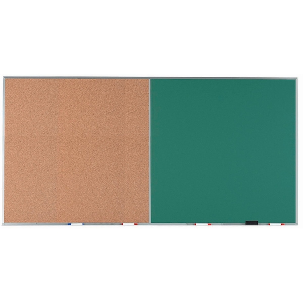 Combination Board, Natural Pebble Grain Cork Bulletin Board/Green Chalkboard w/ Al Frame, 48''Hx96''W