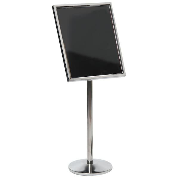 Single Pedestal Dual Capability Neon Markerboard and Menu/Poster Holder is sleek and requires little space. Display menus, posters and artwork or create you own design on the neon markerboard. Overall Frame Dimension 20"Hx22 1/2"W ID Frame 17-1/2"Hx22 1/2"W. Frame and Base Color Chrome