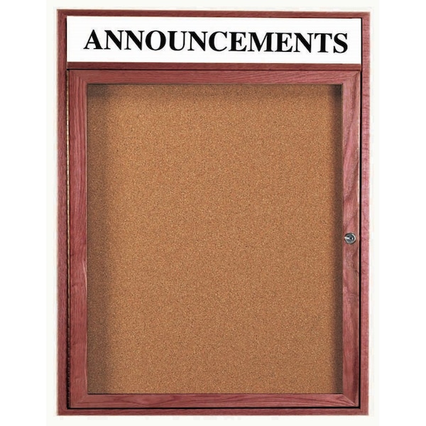 Enclosed Bulletin Board Customizable Header and Cherry Stained Red Oak Frame, 36''Hx30''W