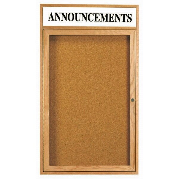 Red Oak Enclosed Bulletin Boards are made of Solid North American Red Oak, and are milled to perfection with hairline miters at the corners sturdily fastened for a durable long life. Supplied with a blank header panel, ready for your custom vinyl lettering. Lettering is not included and must be applied by the customer. The neutral Natural Pebble Grain Cork back panel easily blends with any decor. Finish: High Gloss Clear Lacquer Size 24"Hx18"W 1 Door