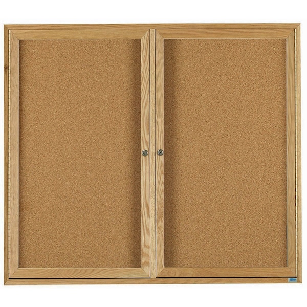 Red Oak Enclosed Bulletin Boards are made of Solid North American Red Oak, and are milled to perfection with hairline miters at the corners sturdily fastened for a durable long life. The neutral Natural Pebble Grain Cork back panel easily blends with any decor. Finish: High Gloss Clear Lacquer Size 36"Hx48"W 2 Doors