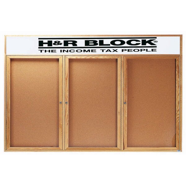 Red Oak Enclosed Bulletin Boards are made of Solid North American Red Oak, and are milled to perfection with hairline miters at the corners sturdily fastened for a durable long life. Supplied with a blank header panel, ready for your custom vinyl lettering. Lettering is not included and must be applied by the customer. The neutral Natural Pebble Grain Cork back panel easily blends with any decor. Finish: High Gloss Clear Lacquer Size 36"Hx72"W 3 Doors