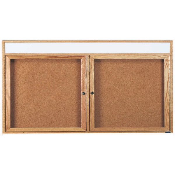 Red Oak Enclosed Bulletin Boards are made of Solid North American Red Oak, and are milled to perfection with hairline miters at the corners sturdily fastened for a durable long life. Supplied with a blank header panel, ready for your custom vinyl lettering. Lettering is not included and must be applied by the customer. The neutral Natural Pebble Grain Cork back panel easily blends with any decor. Finish: High Gloss Clear Lacquer Size 36"Hx72"W 2 Doors