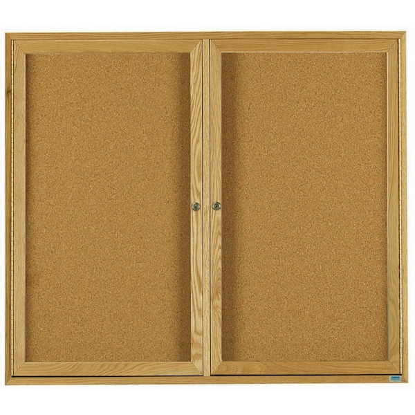 Red Oak Enclosed Bulletin Boards are made of Solid North American Red Oak, and are milled to perfection with hairline miters at the corners sturdily fastened for a durable long life. The neutral Natural Pebble Grain Cork back panel easily blends with any decor. Finish: High Gloss Clear Lacquer Size 48"Hx60"W 2 Doors