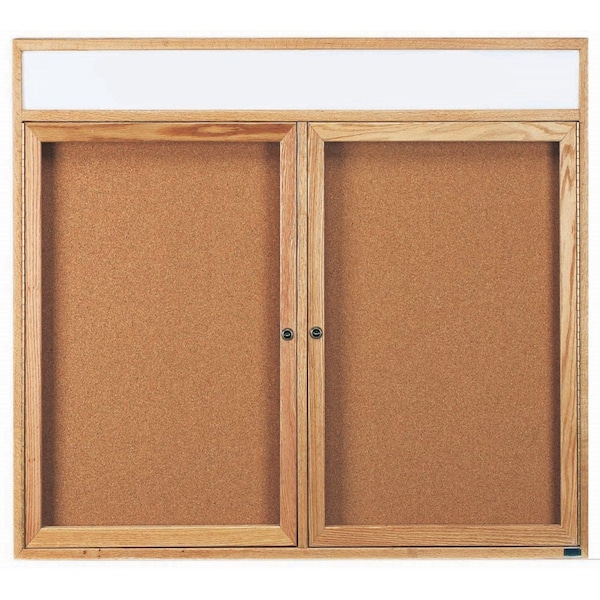 Red Oak Enclosed Bulletin Boards are made of Solid North American Red Oak, and are milled to perfection with hairline miters at the corners sturdily fastened for a durable long life. Supplied with a blank header panel, ready for your custom vinyl lettering. Lettering is not included and must be applied by the customer. The neutral Natural Pebble Grain Cork back panel easily blends with any decor. Finish: High Gloss Clear Lacquer Size 48"Hx60"W 2 Doors