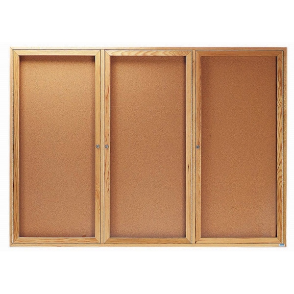 Red Oak Enclosed Bulletin Boards are made of Solid North American Red Oak, and are milled to perfection with hairline miters at the corners sturdily fastened for a durable long life. The neutral Natural Pebble Grain Cork back panel easily blends with any decor. Finish: High Gloss Clear Lacquer Size 48"Hx72"W 3 Doors