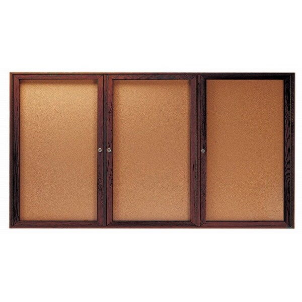 Red Oak Enclosed Bulletin Boards are made of Solid North American Red Oak, and are milled to perfection with hairline miters at the corners sturdily fastened for a durable long life. The neutral Natural Pebble Grain Cork back panel easily blends with any decor. Finish: Walnut Stained Size 36"Hx72"W 3 Doors
