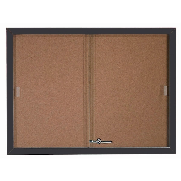 This enclosed bulletin board has an extruded Aluminum frame and sliding doors providing a large display area. The neutral natural pebble grain cork back panel blends nicely with any dcor. Frame Bronze Anodized Powder Coat Size 36"Hx48"W