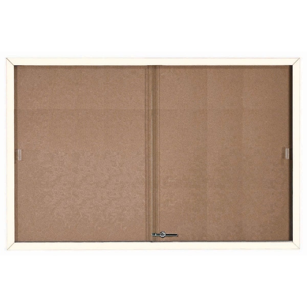Enclosed Bulletin Board w/ Al Frame Sliding Doors, Powder Coated Ivory, 48''Hx72''W