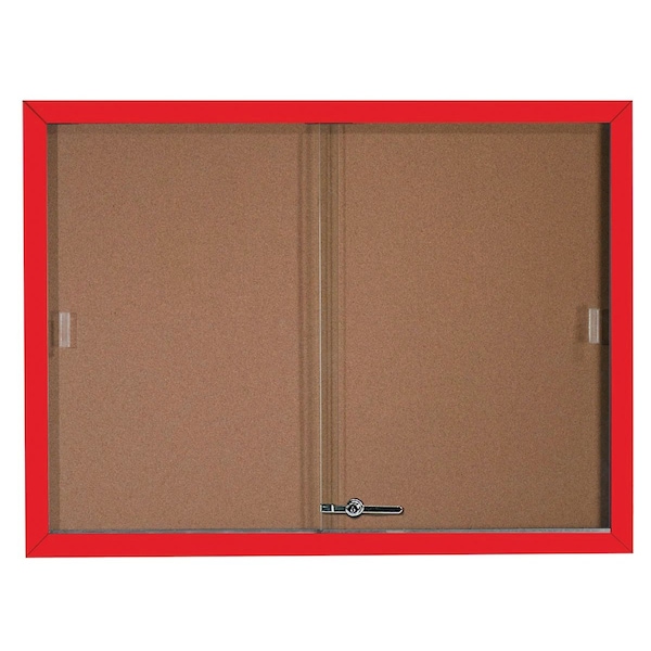 Enclosed Bulletin Board w/ Al Frame Sliding Doors, Powder Coated Red, 36''Hx48''W