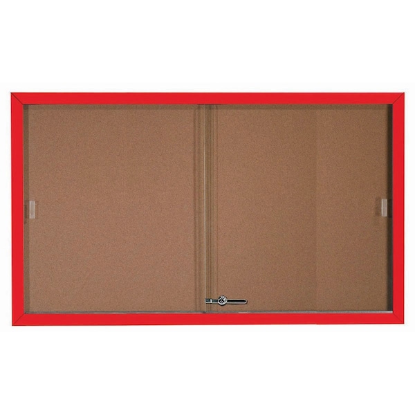 Enclosed Bulletin Board w/ Al Frame Sliding Doors, Powder Coated Red, 36''Hx60''W