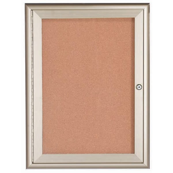 The Waterfall Series Enclosed Bulletin Board provides a contemporary design that will enhance any dcor. The extruded Aluminum frame ensures durability. The back panel is natural pebble grain cork. Frame Color Silver Size 24"Hx18"W 1 Door