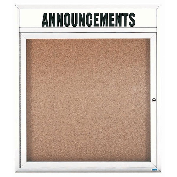 Enclosed Aluminum Bulletin Boards are made of custom extruded parts engineered to provide accurate, durable and handsome cabinets. All corners are neatly mitered and assembled with Heavy duty reinforcements and fasteners. Back panel is natural pebble grain cork. Supplied with a blank header panel, ready for your custom vinyl lettering. Lettering is not included and must be applied by the customer. White Powder Coated Finish Size 36"Hx30"W 1 Door