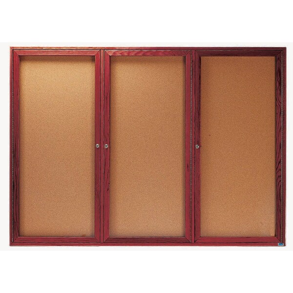 Red Oak Enclosed Bulletin Boards are made of Solid North American Red Oak, and are milled to perfection with hairline miters at the corners sturdily fastened for a durable long life. The neutral Natural Pebble Grain Cork back panel easily blends with any decor. Finish: Cherry Stained Size 48"Hx72"W 3 Doors