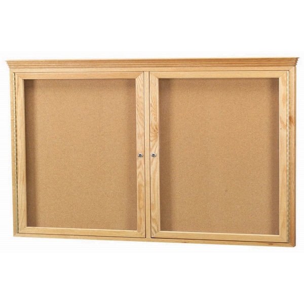 Keep your information secured while displaying it effectively with our beautiful enclosed Bulletin Board featuring a decorative top. The Crown molding adds an elegance never before offered on a standard product. Unit is equipped with a natural cork posting surface and a warm natural oak frame. Finish High Gloss Clear Lacquer Size 36"Hx60"W 2 Doors