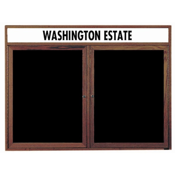 Red Oak Enclosed Changeable Letter Boards are made of Solid North American Red Oak, and are milled to perfection with hairline miters at the corners sturdily fastened for a durable long life. Supplied with a blank header panel, ready for your custom vinyl lettering. Lettering is not included and must be applied by the customer. Black felt covered grooved letter panel accepts plastic letters with tabs positioned on 1/4" centers. Finish: Walnut Stain Size 36"Hx48"W 2 Doors