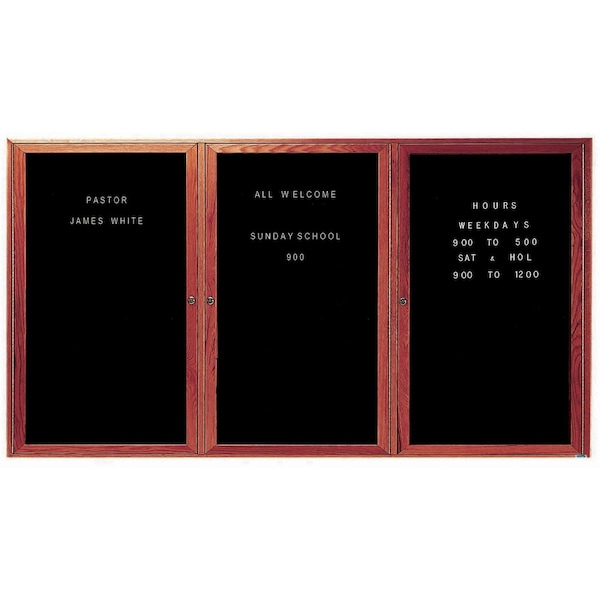 Enclosed Changeable Letter Board w/ Cherry Stained Red Oak Frame, 48''Hx96''W Three Door Unit