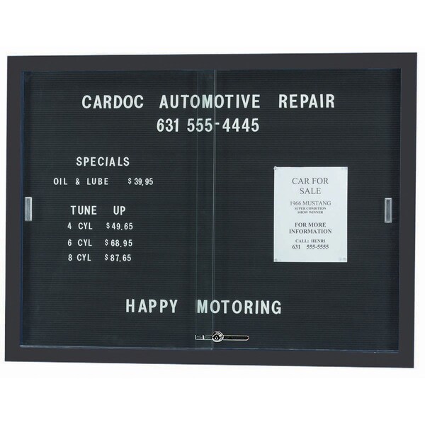 Enclosed Directory Board w/ Al Frame Sliding Doors, Black Felt, Powder Coated Black, 36''Hx48''W