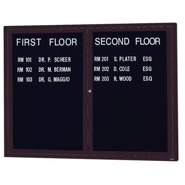 Enclosed Directory w/ Aluminum Frame, Bronze Anodized, Black Felt, 36''Hx48''W, 2 Doors