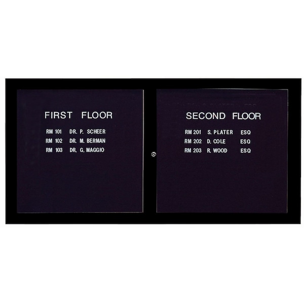 Enclosed Letter Board Directory w/ Powder Coated Black Aluminum Frame, 36''Hx72''W, 2 Doors