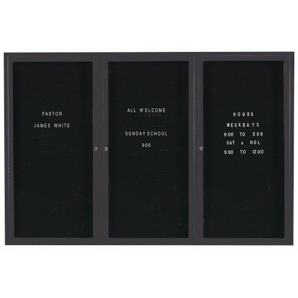 Enclosed Letter Board Directory w/ Powder Coated Black Aluminum Frame, 48''Hx72''W, 3 Doors