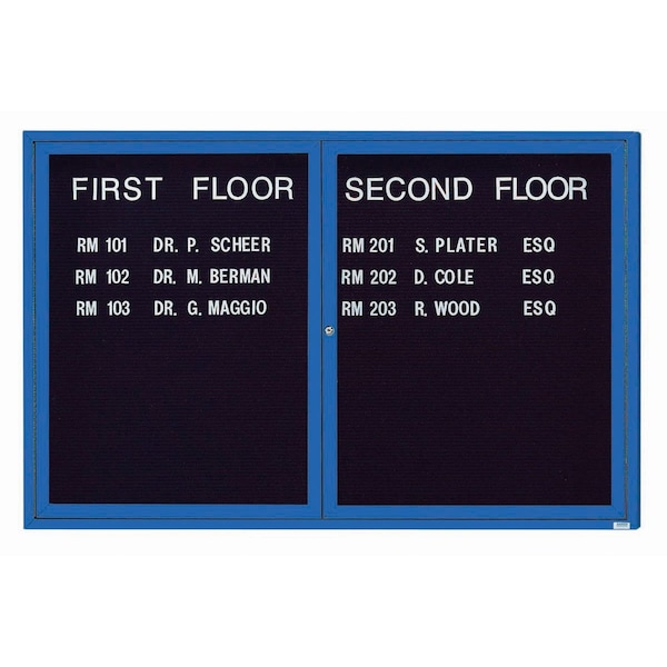 Enclosed Letter Board Directory w/ Powder Coated Blue Aluminum Frame, 48''Hx72''W, 2 Doors