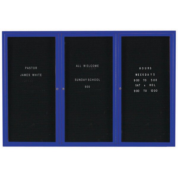 Enclosed Letter Board Directory w/ Powder Coated Blue Aluminum Frame, 48''Hx72''W, 3 Doors