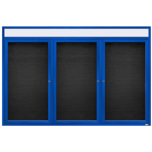 Enclosed Letter Board Directory w/ Powder Coated Blue Aluminum Frame and Header, 48''Hx72''W, 3 Doors