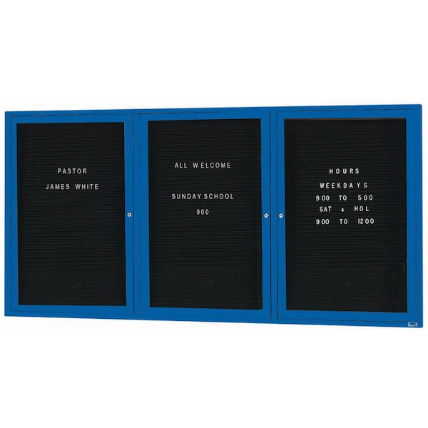 Enclosed Letter Board Directory w/ Powder Coated BlueAluminum Frame, 36''Hx72''W, 3 Doors